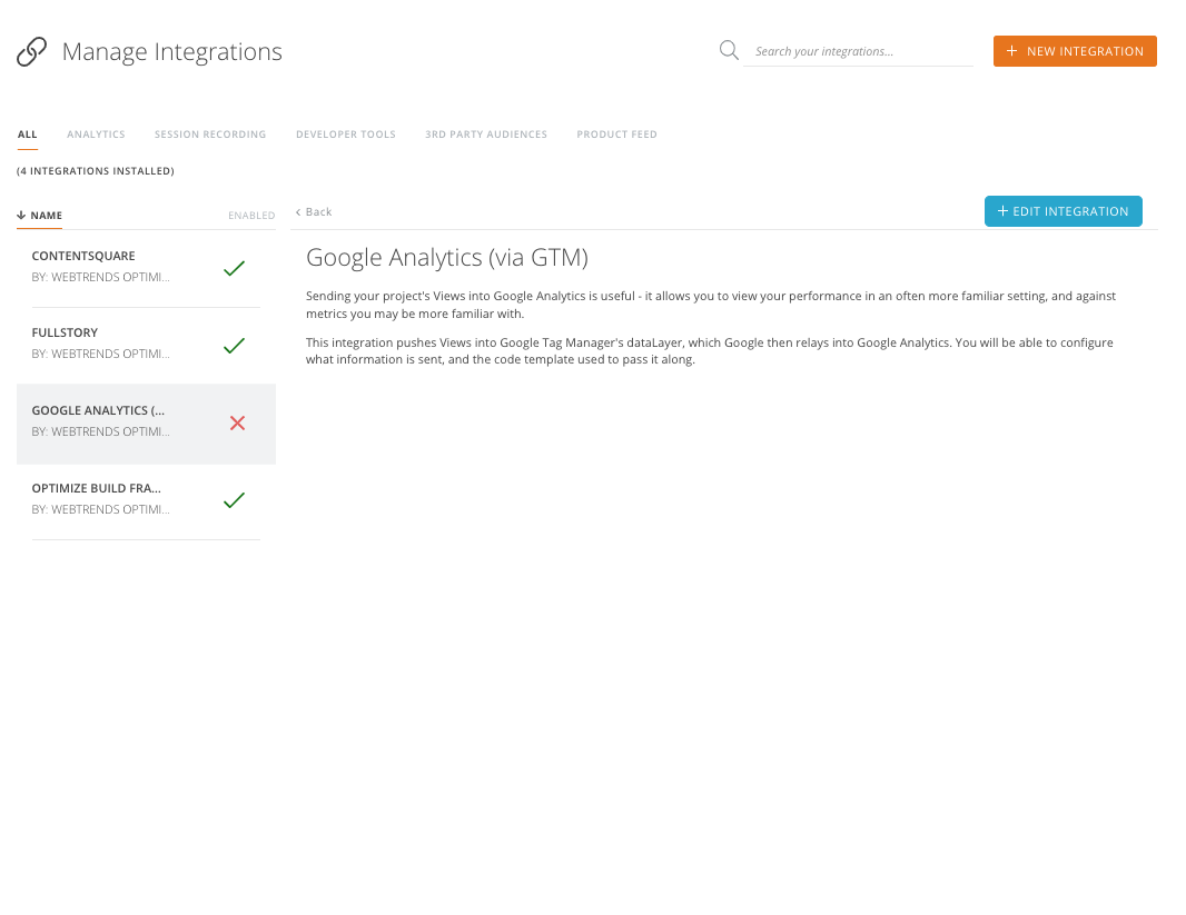 In Webtrends Optimize, we have a library of integrations. We would look you add you as a vendor here.